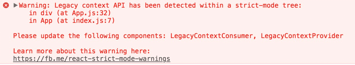 The legacy context API is error-prone, and will be removed in a future major version. It still works for all 16.x releases but will show this warning message in strict mode: